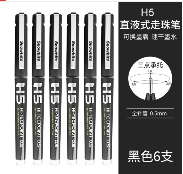 首页 > 办公用品 > 文具 > 白雪(snowhite) 直液式走珠笔速干中性笔 可换墨囊大容量 0.5mm签字笔H5 黑色 6支 (zhyghf_23099867)SKU:yzwhyp904305