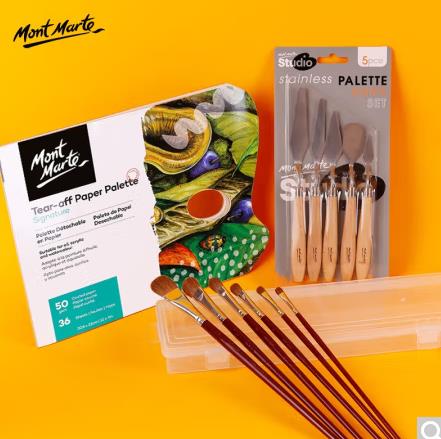 首页 > 办公用品 > 文具 > 蒙玛特 水粉笔套装油画笔水彩丙烯画画笔套装美术成人排笔手绘刷笔 款二画笔(含盒) 可撕调色盘 调色刀 (zhyghf_2023042645)SKU:yzwhyp904486