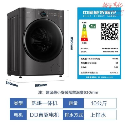 美的 滚筒洗衣机全自动 10公斤洗烘一体 变频直驱 MD100CQ7PRO-T1TSKU:yzwhyp904507