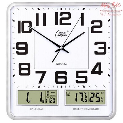 首页 > 仪器仪表 > > 康巴丝(Compas)挂钟客厅万年历温湿度时钟简约方形日历石英钟表 C2983 闪银(zhyghf_980400104)SKU:yzwhyp904590