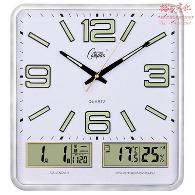 首页 > 仪器仪表 > > 康巴丝(Compas)挂钟万年历温湿度钟表简约挂表客厅石英钟日历时钟 C3073 夜光闪银(zhyghf_980400115)SKU:yzwhyp904635
