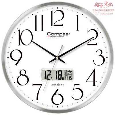 康巴丝(Compas)挂钟客厅简约石英钟表挂墙卧室挂表 C3240-1 银色(zhyghf_980400075)SKU:yzwhyp904638