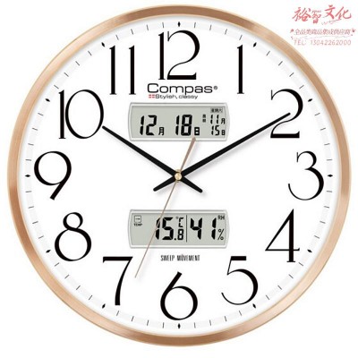 首页 > 仪器仪表 > > 康巴丝(Compas)挂钟万年历石英钟表挂墙客厅时钟日历温湿度挂表 C3240-2 金色(zhyghf_980400071)SKU:yzwhyp904642
