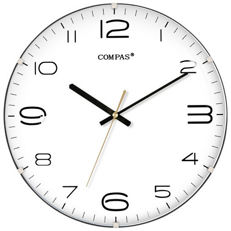 康巴丝(COMPAS)客厅挂钟简约钟表石英钟表挂墙卧室时钟窄边框挂表 3225 黑边白盘(zhyghf_980400059)SKU:yzwhyp904651