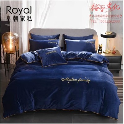 皇朝家私 法兰绒四件套冬季双面加厚保暖珊瑚绒床上四件套水晶绒被套床单 宝蓝 被套200*230cm(zhyghf_23092916)SKU:yzwhyp904725