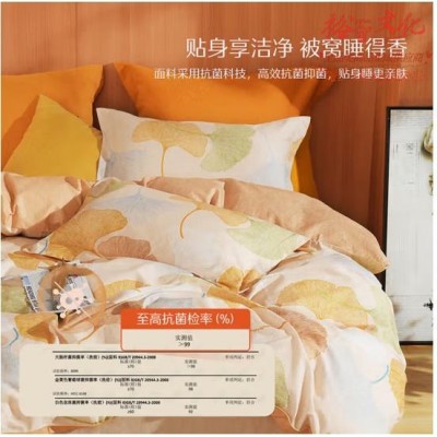 水星家纺床上用品加厚磨毛纯棉四件套被套床单抗菌全棉套件1.5米床 叶朦胧(zhyghf_23092936)SKU:yzwhyp904726