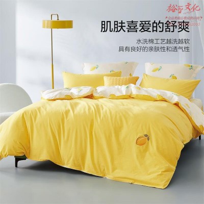 水星家纺床上四件套 水洗棉纯棉被套床单床上用品 夏遇柠檬1.8米床(zhyghf_23092943)SKU:yzwhyp904733