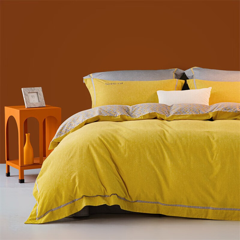 水星家纺 全棉磨毛四件套 秋冬加厚抗菌保暖纯棉套件双人加大床单被套床上用品 摩力 黄1.8米床(zhyghf_23092954)SKU:yzwhyp904734