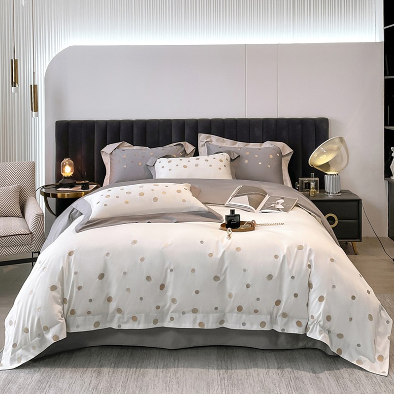 伊伊爱 波点绣花140支长绒棉四件套 波点-雪白绅灰 200*230cm/DTJ0KL02201663(zhyghf_23093068)SKU:yzwhyp904791