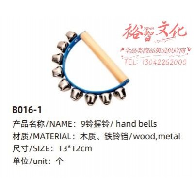 首页 > 文艺设备 > 打击乐器 > 9铃握铃 (zhyghf_50010316)SKU:yzwhyp904995