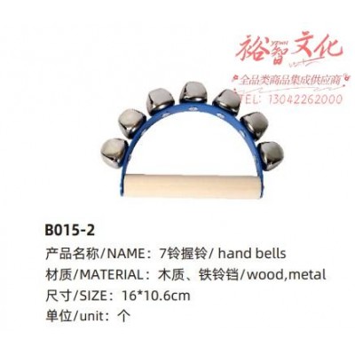 首页 > 文艺设备 > 打击乐器 > 7铃握铃(蓝) (zhyghf_50010315)SKU:yzwhyp904996