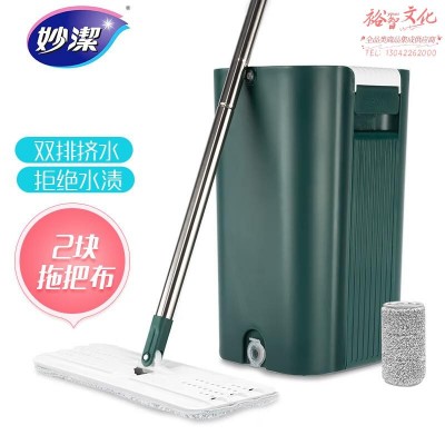 妙洁 刮刮桶刷刷乐 共2块拖布 免手洗平板墩布 家用一拖净带桶懒人(zhyghf_981206448)SKU:yzwhyp906966