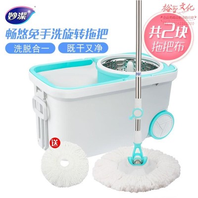 妙洁 畅悠免手洗旋转拖把 家用干湿两用吸水甩干懒人带桶 共2个替换头(zhyghf_981206449)SKU:yzwhyp906967