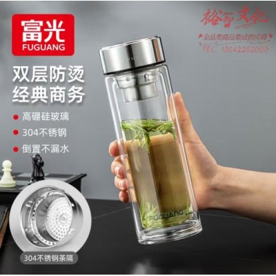 富光玻璃杯双层带茶隔大容量隔热茶杯高档商务泡茶车载水杯透明杯子 WFB1048-500(zhyghf_981500145)SKU:yzwhyp906972