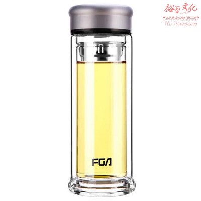 富光 便携玻璃杯双层隔热透明玻璃茶杯带茶隔水杯子 400ML银灰色 WFB1017-400(zhyghf_981500118)SKU:yzwhyp906989