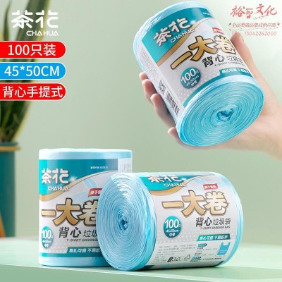 茶花 背心手提垃圾袋45*50cm(100只)一大卷加厚大号垃圾桶袋子302003(zhyghf_980600260)SKU:yzwhyp907023