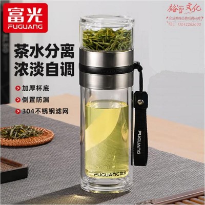 富光泡茶师玻璃杯双层透明玻璃水杯茶水分离杯泡茶杯子310ml 银色 G2205-SH-310(zhyghf_981500097)SKU:yzwhyp907035