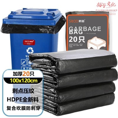 首页 > 用具 > 其他厨房用具 > 斯图(sitoo)加厚大号垃圾袋户外分类垃圾袋保洁袋垃圾桶袋商用酒店物业环卫黑色大塑料袋 100cm*120cm【20个装】双面5丝(zhyghf_980600342)SKU:yzwhyp907052