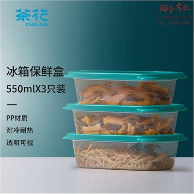 茶花 收纳盒冰箱保鲜盒厨房用品冷冻盒储物盒子便当盒550ml 蓝色3支装 000003(zhyghf_983500071)SKU:yzwhyp907055