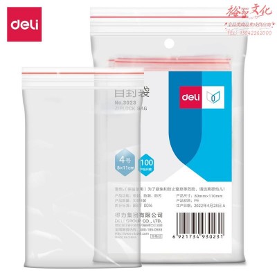 首页 > 用具 > 其他厨房用具 > 得力(deli)食品自封袋4号12*8cm 加厚防水PE透明密封袋密实袋封口袋 收纳封口胶袋防尘密封袋 100只透明 3023(zhyghf_982500198)SKU:yzwhyp907057