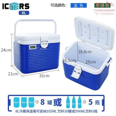 艾森斯 8LPU保温箱 便携式肩带手提款 蓝色(PU6面发泡)400ml冰袋*4 有温度显示(zhyghf_981206281)SKU:yzwhyp907142