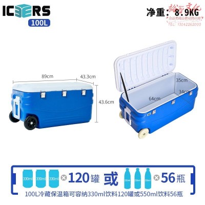 艾森斯 100L户外带轮PU保温箱 冷藏箱 B款深蓝色(PU6面发泡)带冰袋有温度显示(zhyghf_981206277)SKU:yzwhyp907145