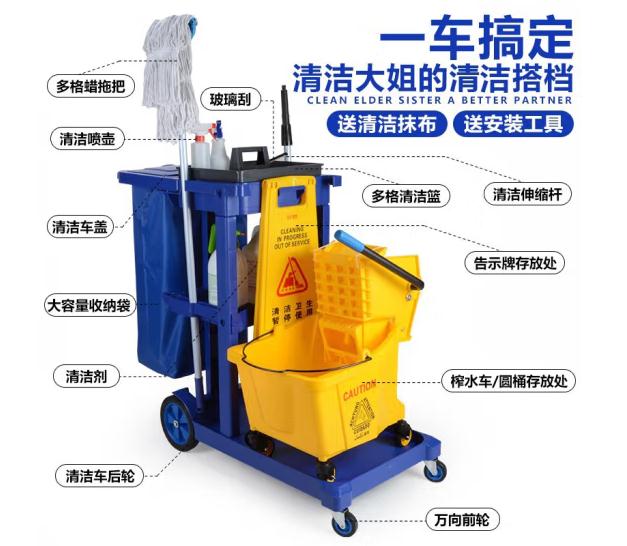 首页 > 用具 > 其他厨房用具 > 多功能清洁手推车杂物车保洁车布草车 清洁工具 灰色蓝色加强版【带盖】默认发蓝色 下单请备注颜色 (zhyghf_1230389)SKU:yzwhyp907339