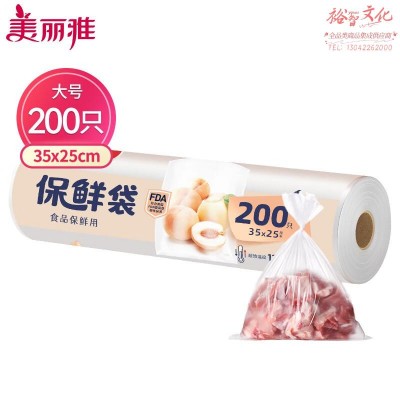 美丽雅 点断式保鲜袋大号200只 35*25cm 一次性加厚实食品分装连卷袋子(zhyghf_983500060)SKU:yzwhyp907365