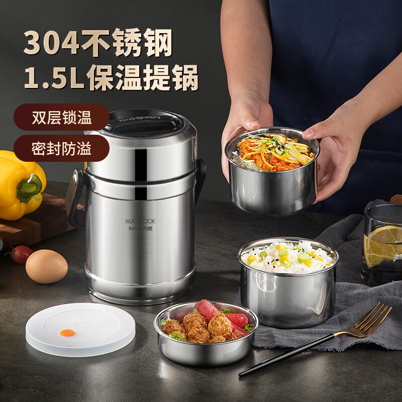 首页 > 用具 > 其他厨房用具 > 美厨(maxcook)304不锈钢保温饭盒提锅1.5L 双层保温桶学生便当盒 MCTG2020(zhyghf_982600085)SKU:yzwhyp907373
