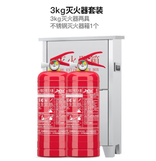 首页 > 消防设备 > 消防灭火装备 > 绿消 3公斤干粉灭火器2具 不锈钢灭火器箱(0.6mm)组合 消防商用灭火器套装 (zhyghf_221723647)SKU:yzwhyp907461
