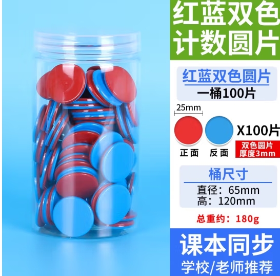 首页 > 办公用品 > 文具 > 六鑫 25mm红蓝双色片币 小学数学计数小圆片几何片双面学习币儿童塑料奖励币教具 25mm红蓝双色圆片【100片桶装】 (zhyghf_803301123)SKU:yzwhyp907633