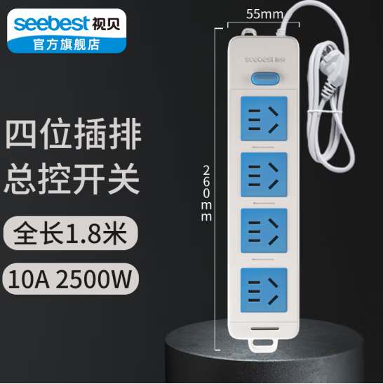 首页 > 建筑建材 > 开关插座 > 视贝 四位(全五孔) 1.8米 插座插排插线板插板家用扦线板带线2M3M5米长线带开关6位扦座 (zhyghf_221723768)SKU:yzwhyp907663