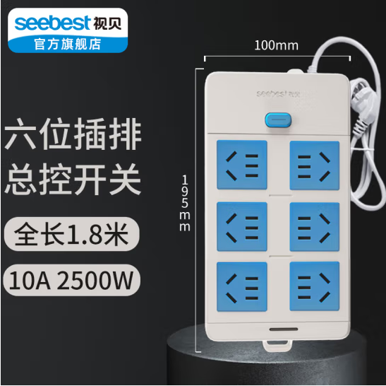 首页 > 建筑建材 > 开关插座 > 视贝 六位 1.8米 插座插排插线板插板家用扦线板带线2M3M5米长线带开关6位扦座 (zhyghf_221723773)SKU:yzwhyp907688