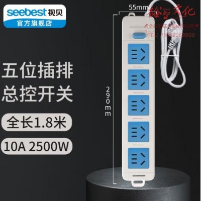 首页 > 建筑建材 > 开关插座 > 视贝 五位(全五孔) 1.8米 插座插排插线板插板家用扦线板带线2M3M5米长线带开关6位扦座 (zhyghf_221723771)SKU:yzwhyp907690