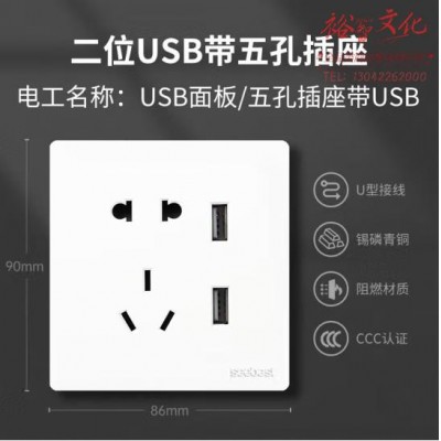 视贝(SEEBEST)二位USB带五孔插座 开关面板电源白色86型全屏大板智美系列 (zhyghf_221723785)SKU:yzwhyp907751