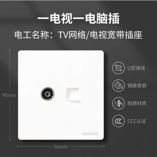 视贝(SEEBEST)电脑电视插座 开关面板电源白色86型全屏大板智美系列 (zhyghf_221723784)SKU:yzwhyp907754