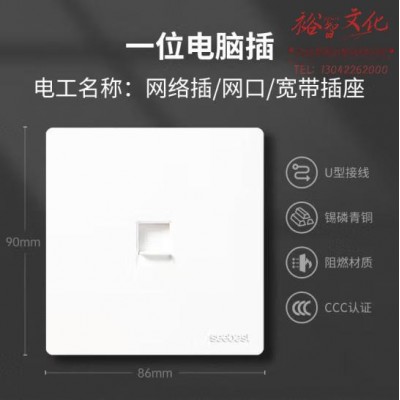 视贝(SEEBEST)一位电脑插座 开关面板电源白色86型全屏大板智美系列 (zhyghf_221723782)SKU:yzwhyp907758