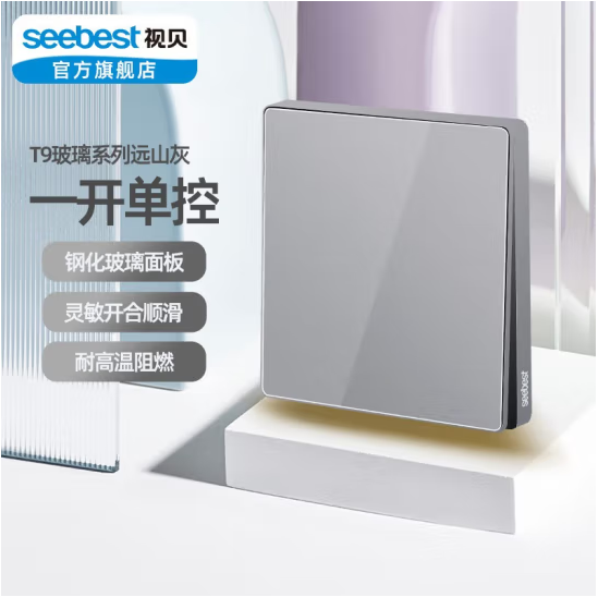 视贝 一开(单控)开关 开关面板插座高端镜面玻璃墙开全屏大板玻璃系列 (zhyghf_221723812)SKU:yzwhyp907812