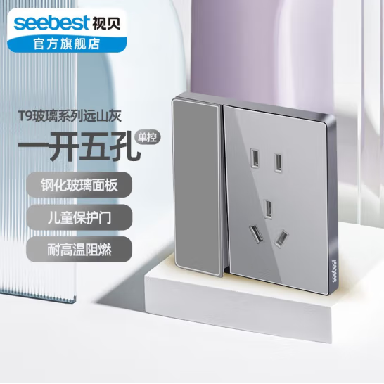 视贝 一开(单)五孔插座 开关面板插座高端镜面玻璃墙开全屏大板玻璃系列 (zhyghf_221723809)SKU:yzwhyp907817