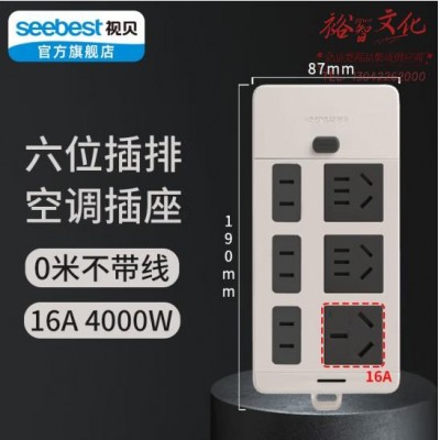 首页 > 建筑建材 > 开关插座 > 视贝(SEEBEST)六位空调大功率带开关A 无线 插座多功能家用插板排插接线板电源转换器新国标延长线插线板带独立开关 (zhyghf_221723853)SKU:yzwhyp907885
