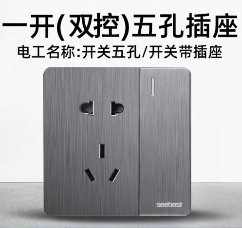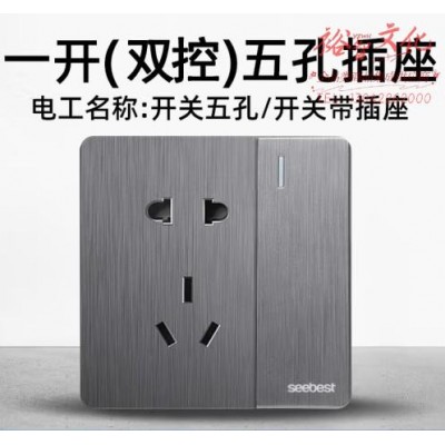 视贝(SEEBEST)一开(双)五孔插座 开关面板拉丝灰墙开大板智美系列 (zhyghf_221723884)SKU:yzwhyp907932