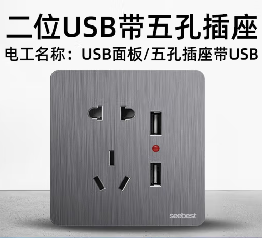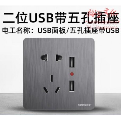 视贝(SEEBEST)二位USB带五孔插座 开关面板拉丝灰墙开大板智美系列 (zhyghf_221723883)SKU:yzwhyp907933