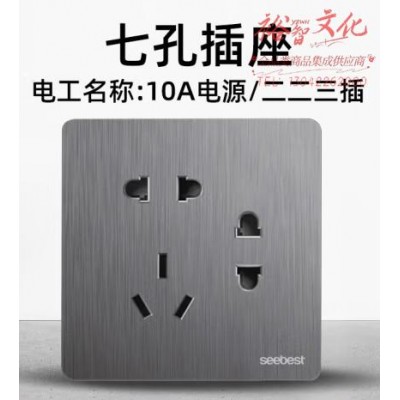 视贝(SEEBEST)七孔插座 开关面板拉丝灰墙开大板智美系列 (zhyghf_221723882)SKU:yzwhyp907935