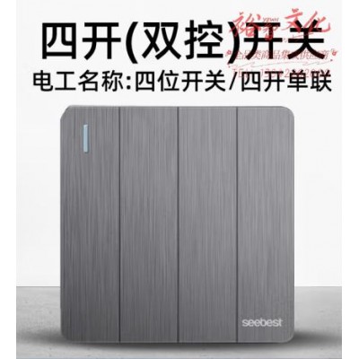 视贝(SEEBEST)四开(双控)开关 开关面板拉丝灰墙开大板智美系列 (zhyghf_221723880)SKU:yzwhyp907938