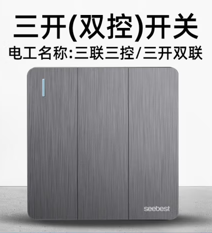 视贝(SEEBEST)三开(双控)开关 开关面板拉丝灰墙开大板智美系列 (zhyghf_221723878)SKU:yzwhyp907941