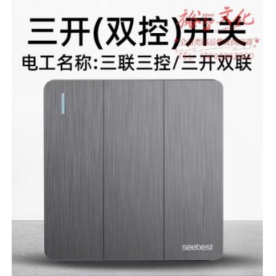 首页 > 建筑建材 > 开关插座 > 视贝(SEEBEST)三开(双控)开关 开关面板拉丝灰墙开大板智美系列 (zhyghf_221723878)SKU:yzwhyp907941