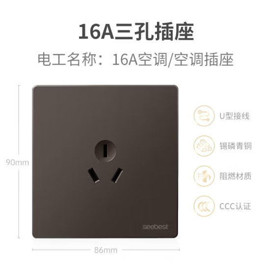视贝(SEEBEST)16A三孔插座 开关面板86型家用暗装墙壁开关空调插时尚质感 (zhyghf_221723891)SKU:yzwhyp907975