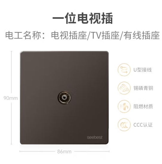 视贝(SEEBEST)电视插座 开关面板86型家用暗装墙壁开关空调插时尚质感 (zhyghf_221723909)SKU:yzwhyp907984