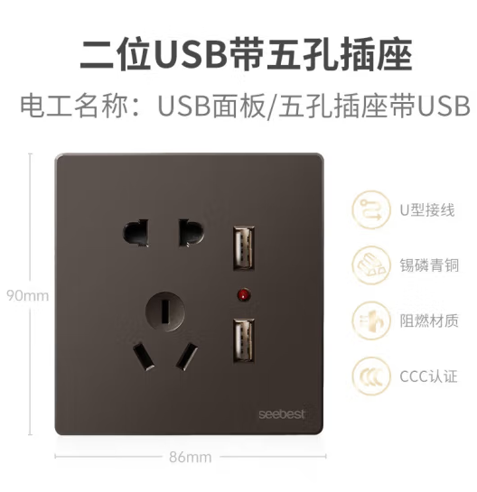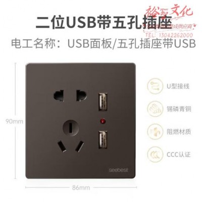 视贝(SEEBEST)二位USB带五孔 开关面板86型家用暗装墙壁开关空调插时尚质感 (zhyghf_221723906)SKU:yzwhyp907987