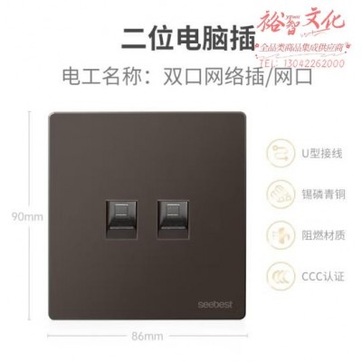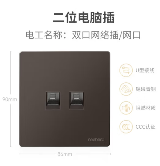 视贝(SEEBEST)二位电脑插座 开关面板86型家用暗装墙壁开关空调插时尚质感 (zhyghf_221723911)SKU:yzwhyp908031
